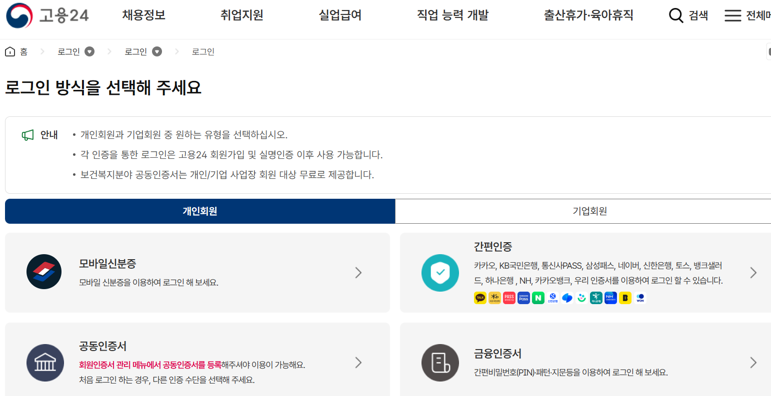 - 고용보험 사이트 접속 → www.ei.go.kr