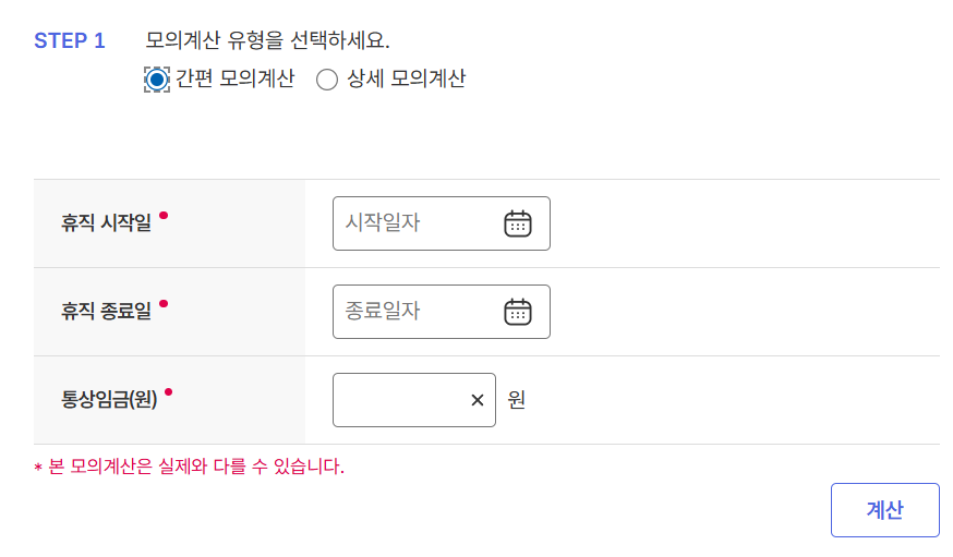 4. 간편 모의계산, 상세 모의계산이 있으므로 선태개해서 작성하면 됩니다