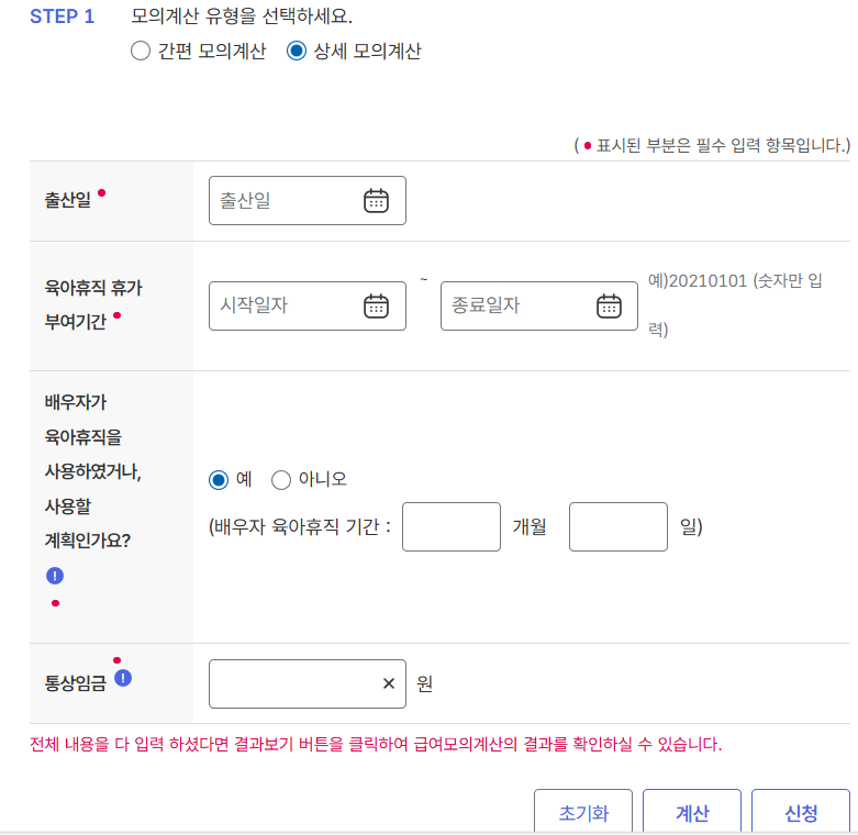 💡 육아휴직 급여 계산기 사용 방법 (실제 따라 해보기)